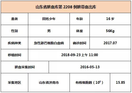 2018年(nian)9月23日上午11:00,16歲田姓少年因患急性淋巴細胞白血病,在河北某三甲醫院接受臍帶(dai)血(xue)移植(zhi),參與(yu)本(ben)次移植(zhi)的(de)臍帶(dai)血(xue)與(yu)患者4/6位(wei)點相(xiang)合,有核(he)細(xi)胞數為15.85*10^8。整個輸注過程很順利,無不良反應,愿(yuan)患者早日恢復健康。