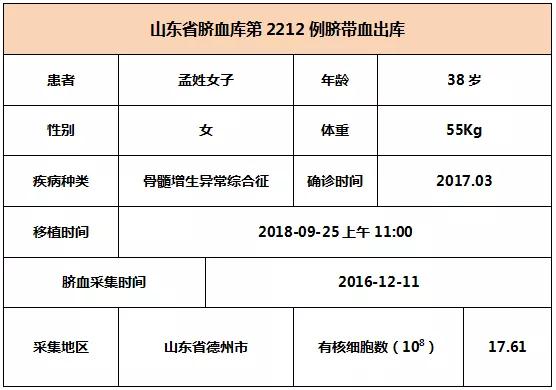 2018年9月25日(ri)上午11:00,38歲孟(meng)姓女子因(yin)患骨髓增生異(yi)常綜合(he)征,在北京(jing)某三甲醫院接(jie)受臍(qi)帶血移植,參與本次(ci)移植的(de)臍(qi)帶血與患者7/10位點相合(he),有核細(xi)胞數(shu)為17.61*10^8。整個輸注(zhu)過程很(hen)順利,無不良反(fan)應,愿患者(zhe)早日(ri)恢復健康。