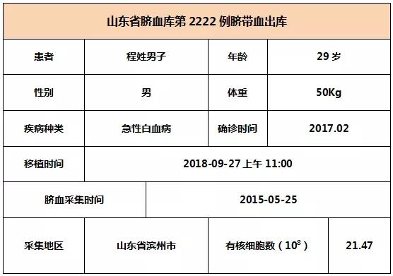 2018年9月27日上午(wu)11:00,29歲程(cheng)姓(xing)男子因患急性白血病(bing),在(zai)湖南某三甲(jia)醫院接(jie)受臍(qi)帶(dai)血移(yi)植,參與(yu)本次(ci)移(yi)植的(de)臍(qi)帶(dai)血與(yu)患者6/10位點相合(he),有核細胞數為21.47*10^8。整個輸注過程(cheng)很順利,無(wu)不良反應,愿患者(zhe)早日(ri)恢復(fu)健康。