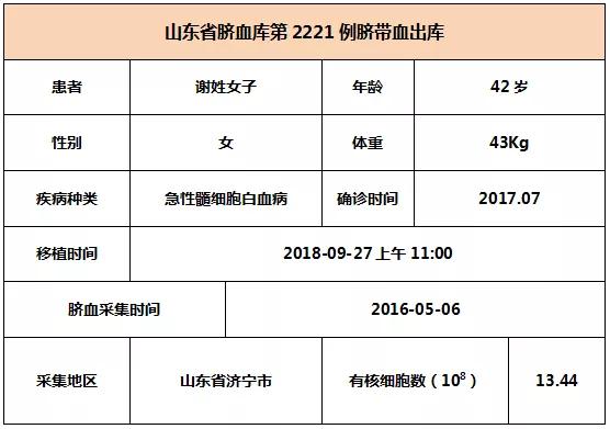 2018年9月27日上午11:00,42歲謝姓女子因患急性(xing)髓細胞白血病,在湖南某(mou)三甲醫院接受臍(qi)(qi)帶血移(yi)植,參與本次移(yi)植的臍(qi)(qi)帶血與患者6/10位點相合,有核(he)細胞數為13.44*10^8。整個輸注過(guo)程很順利(li),無不(bu)良(liang)反應,愿患者早日恢復健(jian)康。