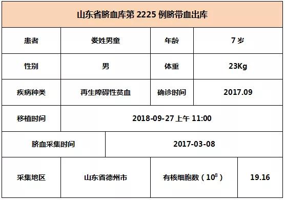 2018年9月27日上午11:00,7歲婁姓男童因患再生障(zhang)礙性貧血(xue),在北京某三甲(jia)醫院(yuan)接受臍帶(dai)血(xue)移植,參與(yu)本(ben)次移植的臍帶(dai)血(xue)與(yu)患者5/10位點相合,有核細胞數(shu)為(wei)19.16*10^8。整個輸注過程很順利(li),無不良反應,愿患者早(zao)日恢復健康(kang)。