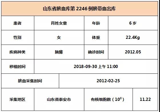 2018年9月30日上午(wu)11:00,6歲(sui)肖姓女童因患腦癱,在廣(guang)州某三甲醫院接受自體臍(qi)(qi)帶血(xue)移(yi)植,參與本(ben)次(ci)移(yi)植的(de)臍(qi)(qi)帶血(xue)與患者10/10位點相合(he),有(you)核細胞數(shu)為11.22*10^8。整個輸注過程很順(shun)利,無(wu)不良(liang)反應,愿患者早(zao)日恢復健康。