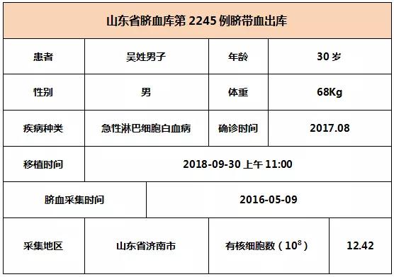 2018年9月30日上午11:00,30歲吳姓男子因患急性淋巴細胞白血病(bing),在河北某三(san)甲醫院(yuan)接受臍帶血(xue)移植,參與本次(ci)移植的臍帶血(xue)與患(huan)者4/6位點相合,有核細胞數為12.42*10^8。整個輸注(zhu)過程很順利,無不良(liang)反應(ying),愿(yuan)患(huan)者早日恢復健康。