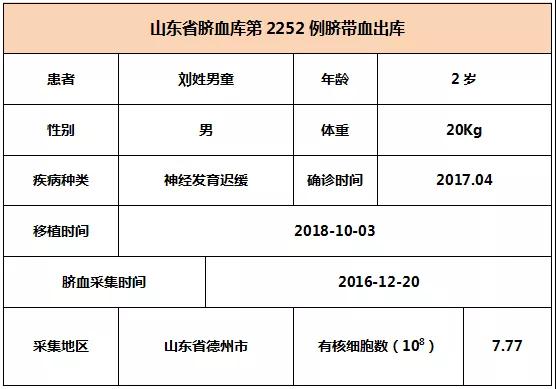 2018年(nian)10月03日(ri),2歲(sui)劉姓男童(tong)因患(huan)神經發育(yu)遲緩,在(zai)廣州某(mou)三(san)甲醫院(yuan)接受自體臍帶血(xue)移(yi)植,參與本次移(yi)植的臍帶血(xue)與患者10/10位點(dian)相合(he),有核細胞(bao)數為7.77*10^8。整(zheng)個(ge)輸注過程很順利,無不良反應,愿(yuan)患者早日恢復健康。