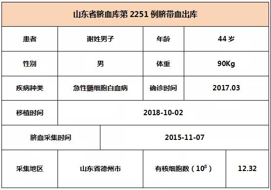 2018年(nian)10月02日,44歲(sui)謝(xie)姓男子因患急性髓細胞白(bai)血病,在廣(guang)東(dong)某三(san)甲醫院接受臍帶血移植,參與本次(ci)移植的(de)臍帶血與患者(zhe)5/10位點相合,有核細胞數為12.32*10^8。整個輸注過程很順利(li),無不良反應,愿患者早日恢復健康。