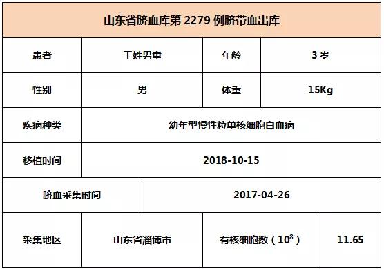 2018年10月(yue)15日(ri),3歲王姓男童(tong)因患幼年型慢性粒單核(he)細胞白(bai)血病,在(zai)四川某三甲醫院接(jie)受臍帶(dai)血(xue)移(yi)植,參(can)與本次移植的臍帶血(xue)與患者6/10位點相合(he),有(you)核細胞數為11.65*10^8。整(zheng)個(ge)輸注過程很順利,無不良反應,愿患者早日恢(hui)復健康。