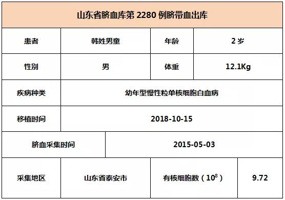 2018年10月(yue)15日(ri),2歲韓姓男童因患幼年型(xing)慢性粒單核細胞白血病,在廣(guang)東某三(san)甲醫院(yuan)接受臍帶血移植(zhi),參與(yu)(yu)本(ben)次(ci)移植的臍(qi)帶血與(yu)(yu)患者8/10位(wei)點(dian)相合(he),有核細胞數為9.72*10^8。整個輸注過(guo)程很順(shun)利,無(wu)不良反應(ying),愿患者(zhe)早日恢(hui)復健康(kang)。