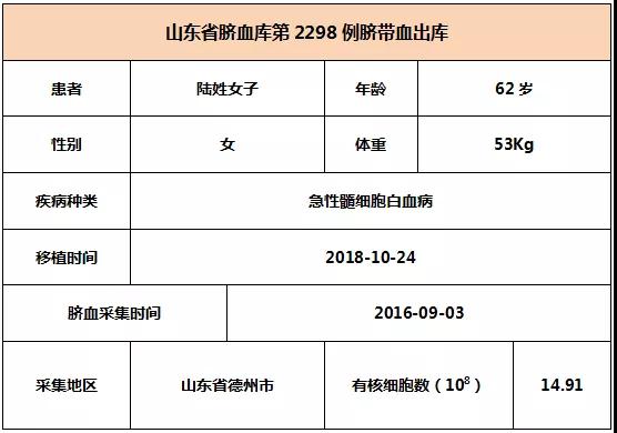 2018年10月24日(ri),62歲陸姓女子(zi)因患急性髓(sui)細胞白血病,在北(bei)京(jing)某三甲醫院接(jie)受臍(qi)帶(dai)血移植,本次移植的(de)臍(qi)帶(dai)血與患(huan)者5/10位點相合,有核細胞(bao)數(shu)為14.91*10^8。整個輸注過程很順利,無不良反應,愿患者早日恢復(fu)健康(kang)。