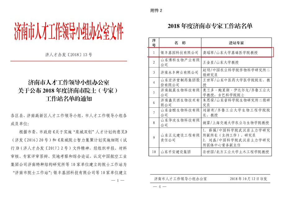 近日,銀豐基因科技(ji)(ji)有限公司(以下簡稱(cheng)“銀豐基因”)入選濟南市專家(jia)工作站。這是銀豐基因積極(ji)搭建(jian)高(gao)層(ceng)次科技(ji)(ji)創(chuang)(chuang)新平臺(tai),促進產學研(yan)協(xie)同(tong)創(chuang)(chuang)新和科技(ji)(ji)成果轉(zhuan)移轉(zhuan)化(hua),響應市委、市政府“泉城雙創(chuang)(chuang)”人(ren)才計(ji)劃、泉城院士智力(li)集聚計(ji)劃的(de)重大成果。