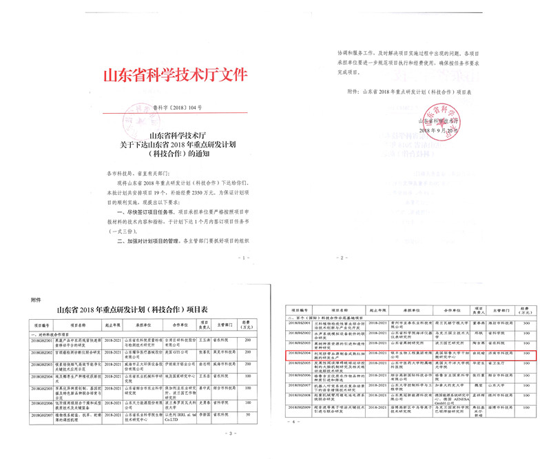 近日,銀豐生(sheng)物集團經(jing)山東省(sheng)科學技(ji)術(shu)(shu)廳認定,榮獲山東省(sheng)科學技(ji)術(shu)(shu)廳2018年(nian)山東省(sheng)品牌國(guo)際科技(ji)合作基地和2018年(nian)重點(dian)研發計劃(國(guo)際合作)項目100萬資金扶持。