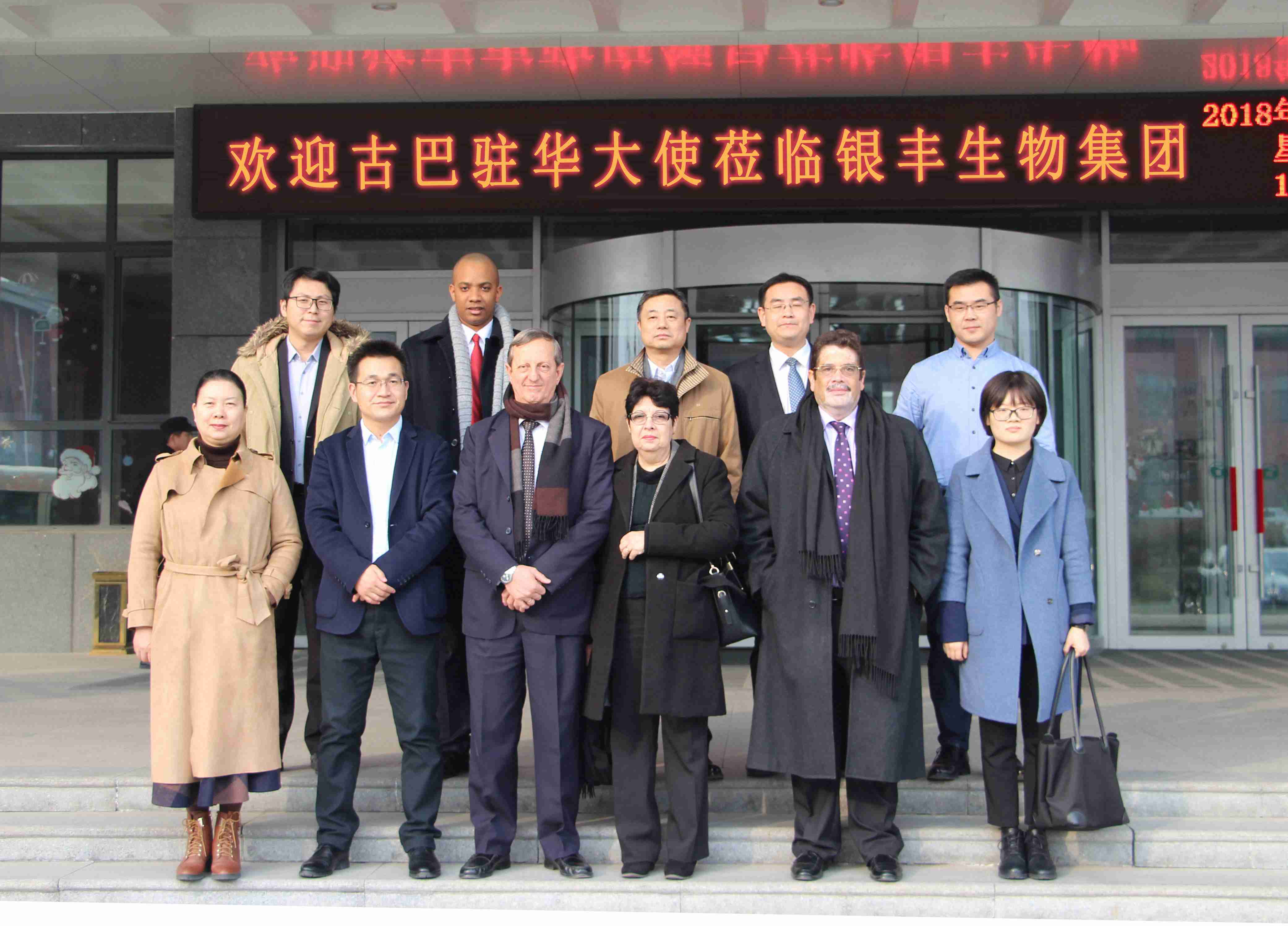12月19日,古巴駐華大使拉米(mi)雷斯一行到銀豐生物集團參(can)(can)觀交流。集團總裁宋(song)現(xian)收、研(yan)發部(bu)總監王芝輝等陪(pei)同參(can)(can)觀。